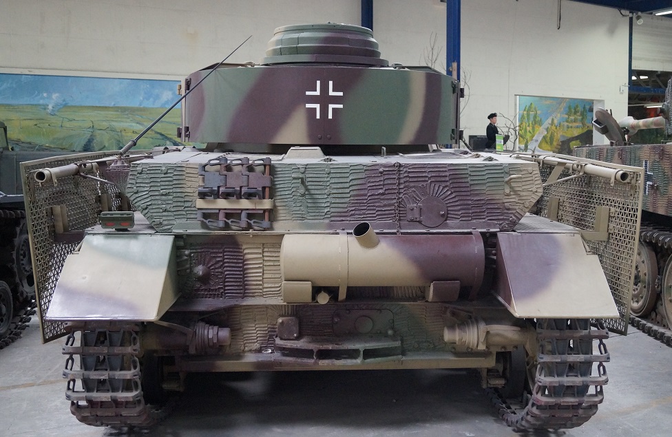 Comments:The Panzerkampfwagen IV (PzKpfw IV), commonly known as the Panzer IV, was a German medium tank developed in the late 1930s and used extensively during the Second World War. Its ordnance inventory designation was Sd.Kfz. 161.The Panzer IV was the most widely manufactured German tank of the Second World War, with some 8,500 built. The Panzer IV was used as the base for many other fighting vehicles, including the Sturmgeschütz IV assault gun, Jagdpanzer IV tank destroyer, the Wirbelwind self-propelled anti-aircraft gun, and the Brummbär self-propelled gun. The Panzer IV saw service in all combat theaters involving Germany and was the only German tank to remain in continuous production throughout the war. Upgrades and design modifications, intended to counter new threats, extended its service life. Generally, these involved increasing the Panzer IV's armor protection or upgrading its weapons, although during the last months of the war, with Germany's pressing need for rapid replacement of losses, design changes also included simplifications to speed up the manufacturing process. The Panzer IV was partially succeeded by the Panther medium tank, which was introduced to counter the Soviet T-34, although the Panzer IV continued as a significant component of German armoured formations to the end of the war. The Panzer IV was the most widely exported tank in German service, with around 300 sold to Finland, Romania, Spain and Bulgaria. After the war, Syria procured Panzer IVs from France and Czechoslovakia, which saw combat in the 1967 Six-Day War. 8,553 Panzer IVs of all versions were built during World War II, with only the StuG III assault-gun/tank destroyer's 10,086 vehicle production run exceeding the Panzer IV's total among Axis armored forces